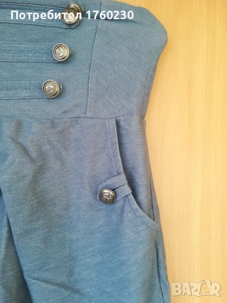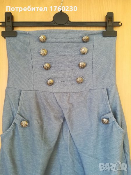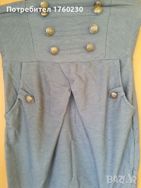 Продавам дамска рокля. Размер ХС. Материята е еластично трико- имитация на дънков плат. С два джоба в предната част. Гърбът е с ластик. Цена 10
