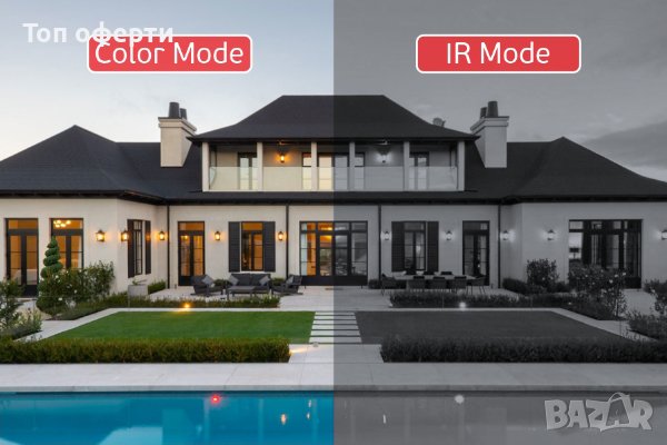 – Цветно нощно наблюдение – 2 мощни лампи светят в топъл бял цвят, осветявайки намиращите се в периметъра на наблюдение обекти. Ъгълът на осветяване може да бъде променян ръчно. Лампите се активират автоматично при наличие на движение.