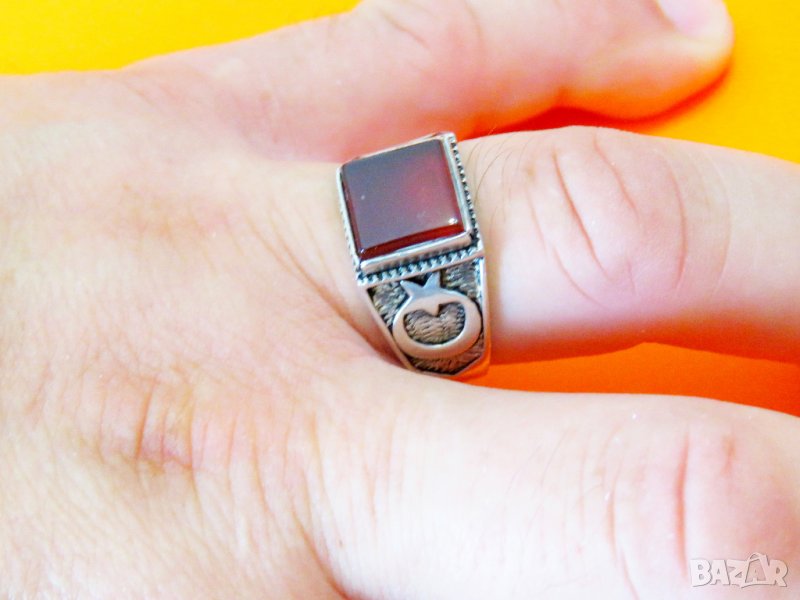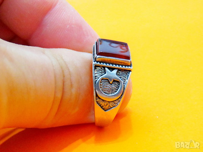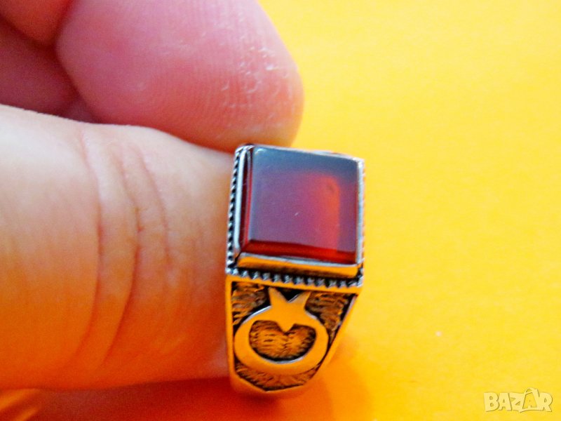 мъжки сребърен пръстен, турски пръстен с карнеол и с ГОЛЯМ полумесецът и звездата, турски пръстен, османски пръстен, турция, флага на Турция - Събуди страстта и привличай любовта към теб !