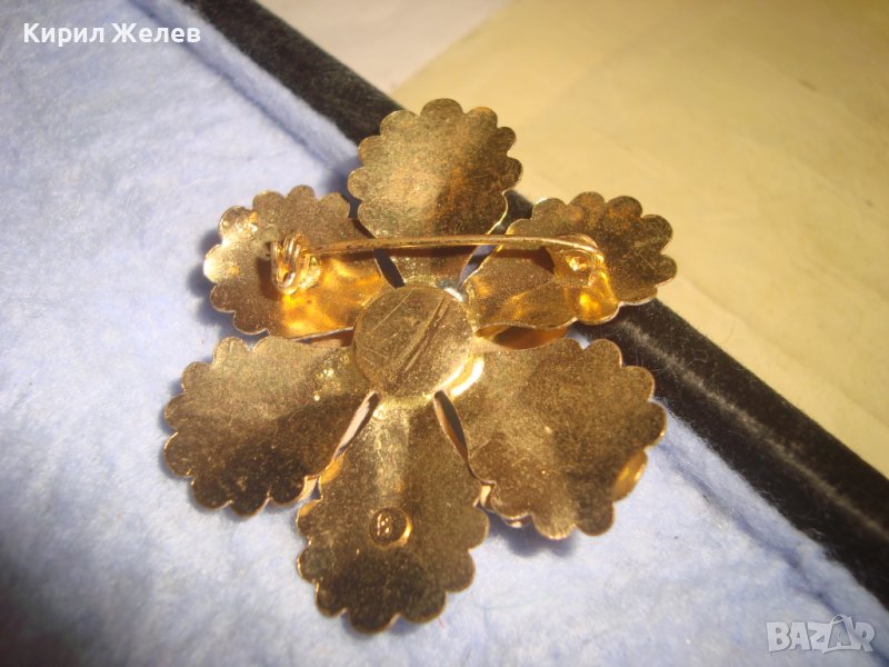 СТАРА КРАСИВА ФЛОРАЛНА с ПОЗЛАТА АРТ ДЕКО БРОШКА - ЦВЕТЕ 88851