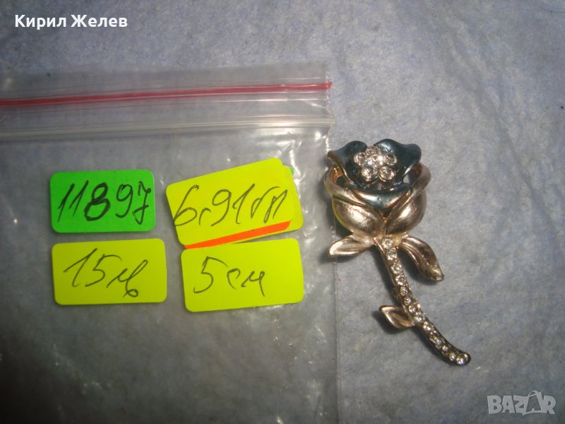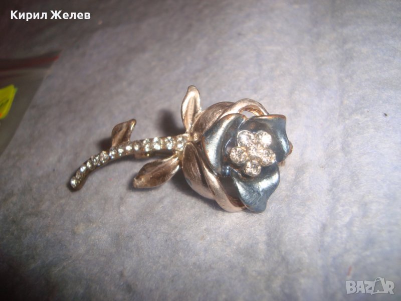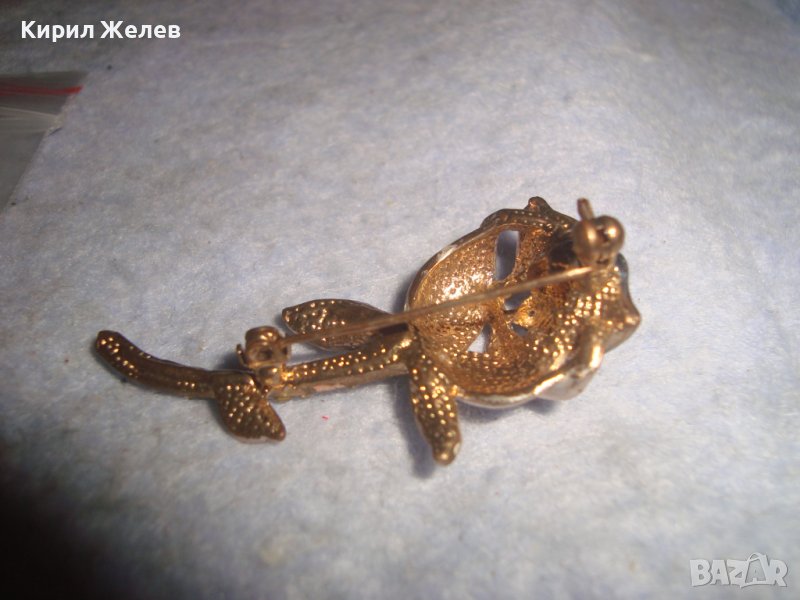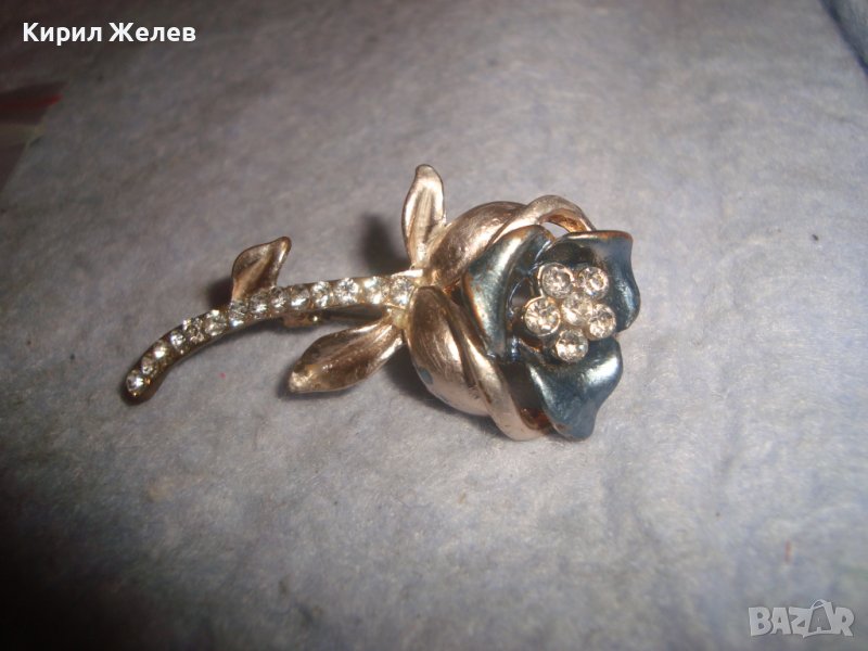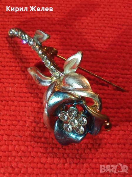 НЕЖНА ПОЗЛАТЕНА КРИСТАЛНА АРТ БРОШКА - РОЗА 11897