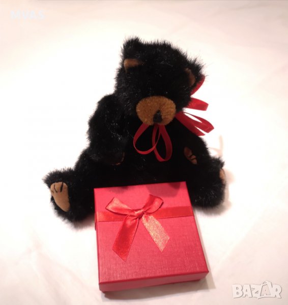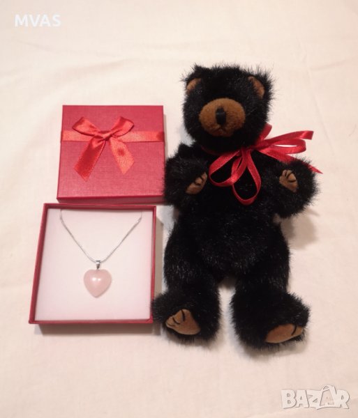Ново Колие Сърце с играчка черно мече посребрено с розов кварц подарък за жена