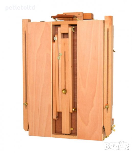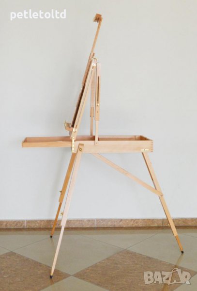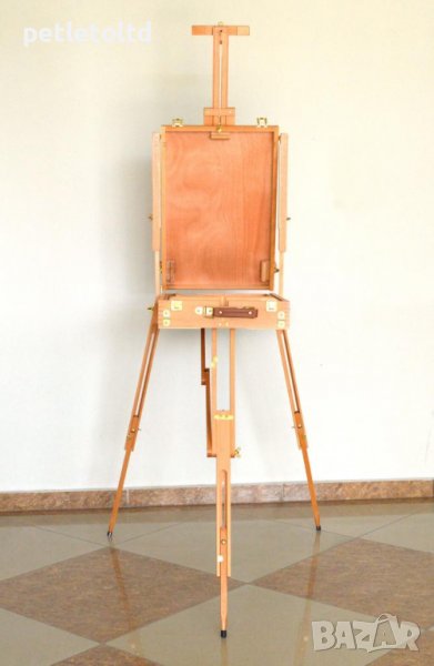 - Стативът е снабден с кутия за съхранение на бои, палитра за рисуване и презрамка за носене с регулируема дължина.