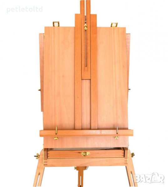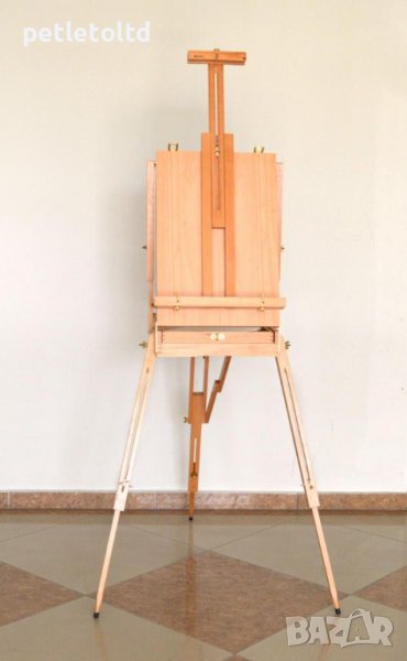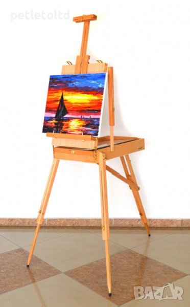 - Стативът е снабден с кутия за съхранение на бои, палитра за рисуване и презрамка за носене с регулируема дължина.