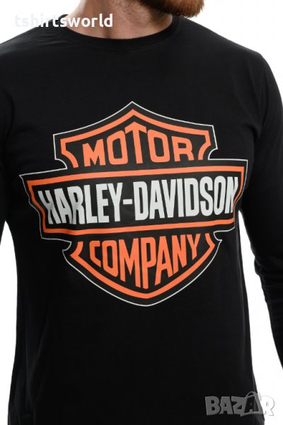 Страхотна нова черна мъжка блуза с дълъг ръкав с професионално изработен висококачествен трансферен печат Harley Davidson, устойчив на пране с години. Блузата е изработена в България под марката PRINTEX от висококачествен 100% пениран памук, който запазва цялостта на материята и наситеността на цветовете на черното трико дълго време. Може да се пере при температура до 40 градуса. Спокойно можем да гарантираме за качеството на изработката и ярките цветове на дизайна.
