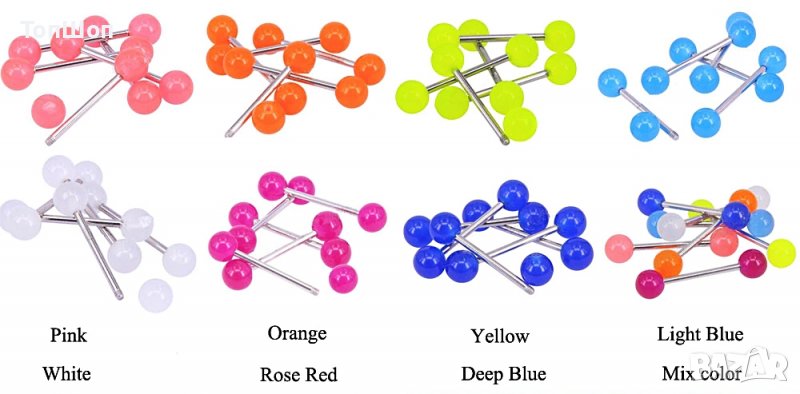 10бр. Пиърсинг обеци в един цвят за език , уши , тяло в Random пакет.