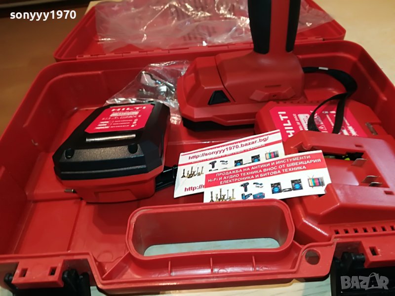 HILTI LI-ION МАШИНА С ЗАРЯДНО И 2БР БАТЕРИИ-КОМПЛЕКТ С КУФАРЧЕ-РАБОТИ ИДЕАЛНО ИМА И ЛЕД ПОДСВЕТКА-от днес 28.02.22г пращаме със спиди или еконт с преглед и тест след превод на капаро за куриерската услуга поради зачестили некоректни потребители-поръчки само тук в саита! по телефона и със смс не! краини цени! бартери не правиме! всеки ден нови неща-още 2-3 наши обяви тук