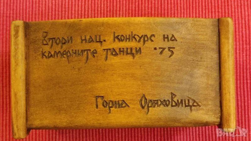 Сувенирна дървена кутия, кутия за бижута ръчно изработена за Втори национален конкурс на камерите танци - 1975 година Горна Оряховица. В отлично състояние