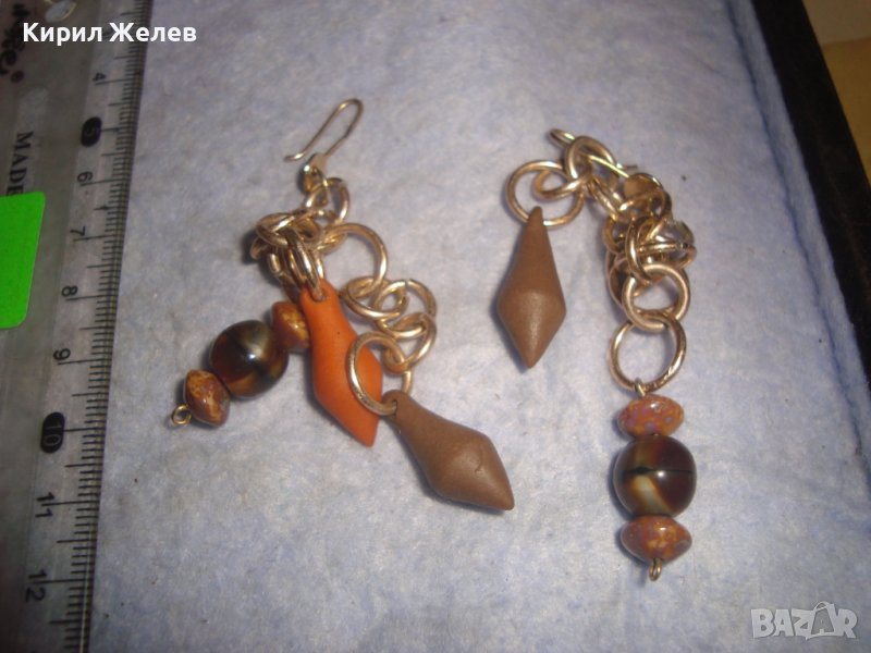 СТАРИ ВИНТИДЖ ЗЛАТИСТИ АРТ ДЕКО СТИЛ ОБЕЦИ с ПОЛУСКЪПОЦЕННИ КАМЪЧЕТА и ПОЛИМЕРНА ГЛИНА 27787