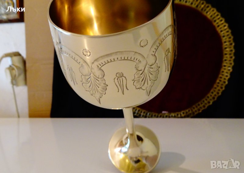 Величествен старинен английски бокал,чаша,майсторска ръчна