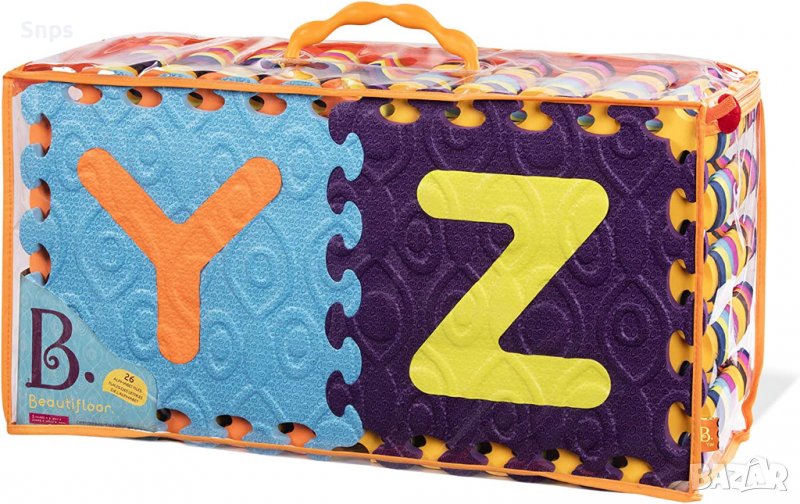 Освежете всяка стая в дома си и я направете още по-уютна за децата с подложката за букви Beautifloor от B. toys. Този комплект съдържа 26 взаимосвързани плочки, които са цветни и дебели, така че дори дървените подове са удобни, когато детето ви падне, докато се учи да ходи. За още по-голямо забавление всяка буква може да се извади от плочката. Тази подложка за пъзел е удобно място за учене. Ако искате да вземете тези плочки в движение, можете лесно да ги съхранявате в чантата за многократна употреба и да ги носите навсякъде, където детето ви иска да играе. Размерът в сглобен вид е 140 х 140 см. Подходящо за деца от 0 месеца.