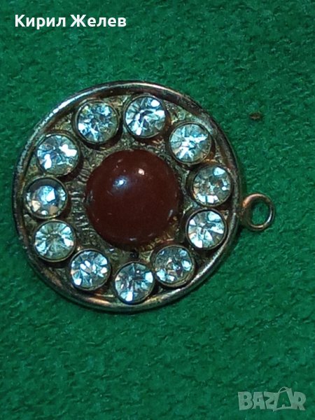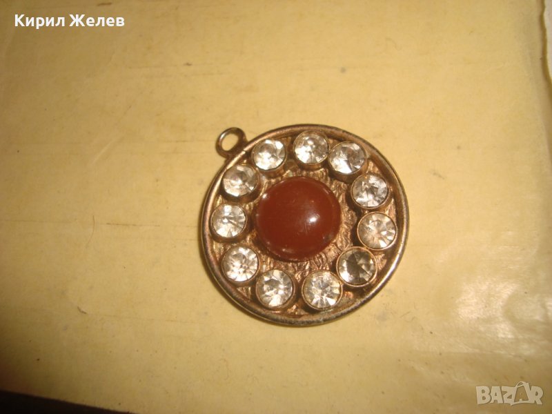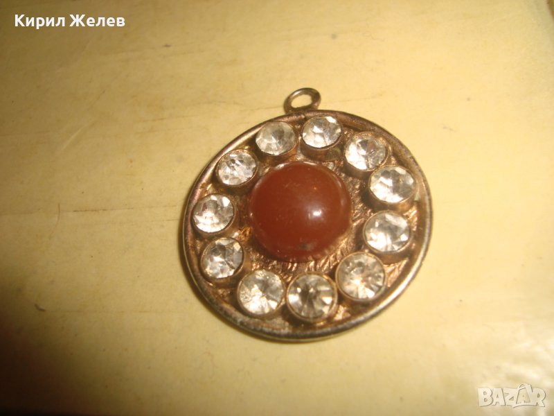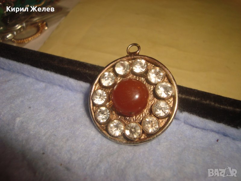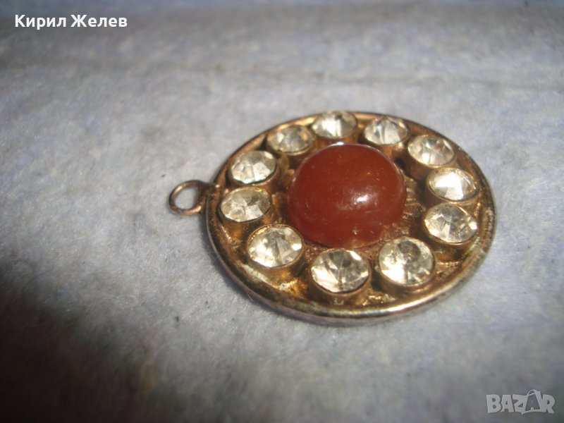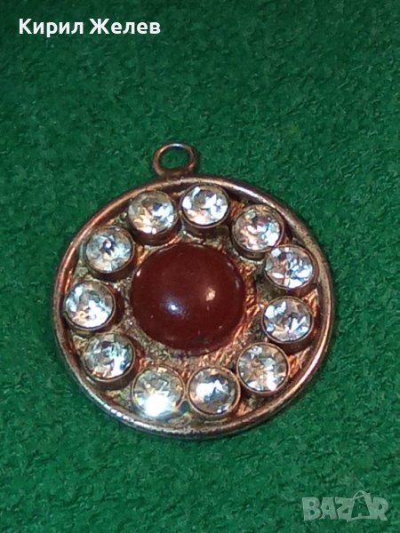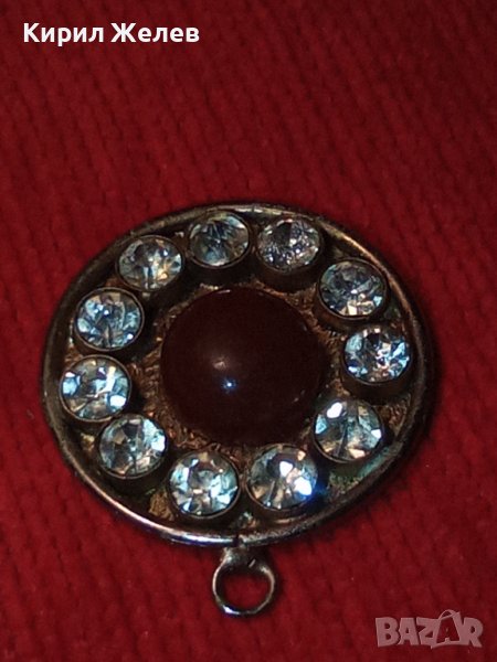 СТАР ПОСРЕБРЕН АРТ ДЕКО РЕТРО МЕДАЛЬОН с ШЛИФАВАН ЧЕРВЕН КЕХЛИБАР ФАТУРАН и ФАСЕТИРАНИ ЦИРКОНИ 29364