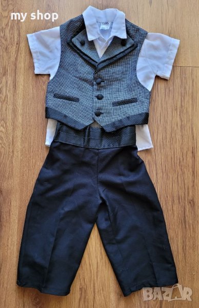 Продавам официален комплект от 3 части-риза,панталон и елече,размер за 2год.Ползвано,но запазено.