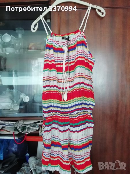 Красив, практичен, нежен и приятен за носене, със свежи цветове. Подмишници 50 см., дължина 75 см. Купуван от Америка.