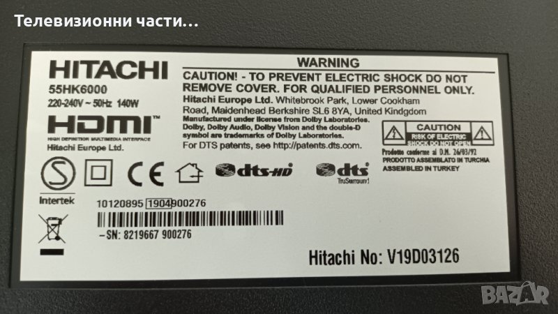 Hitachi 55HK6000 със счупен екран-VES550QNDS-2D-N13/17IPS72/17MB130S/17DLB55NER1-A/B