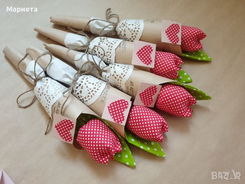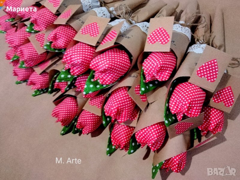 Червени лалета Ръчна Изработка Текстилни Лалета Декорация Лалета от плат Цветя за 8 Март → Обява 37733607