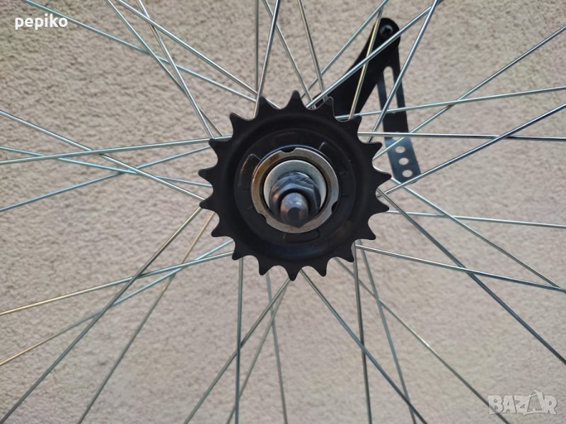 НОВА алуминиева капла с контра CNABO 28 цола,алуминиева двойностенна алуминиева капла 28 цола с контра,каплата е с венец с 18 зъба,каплата е с твърда ос,с гайки,с никелирани спици,подходяща за гуми 700 х 35с до 2,35,много добра.