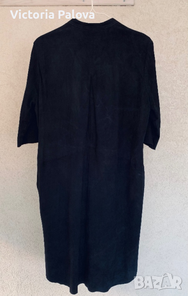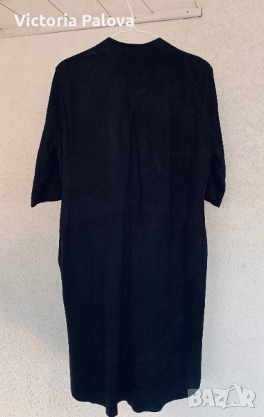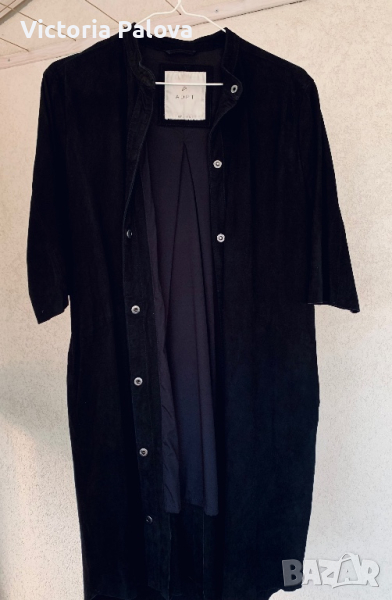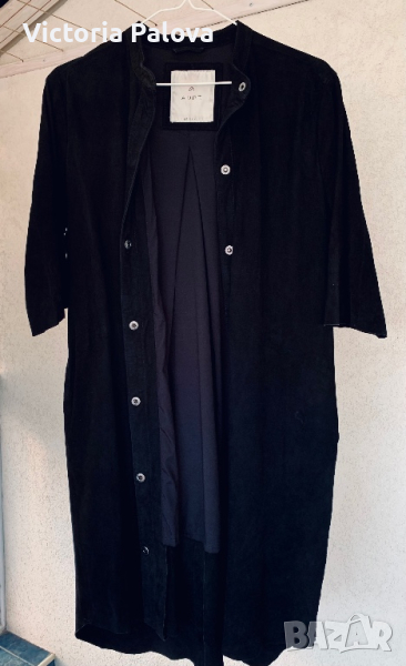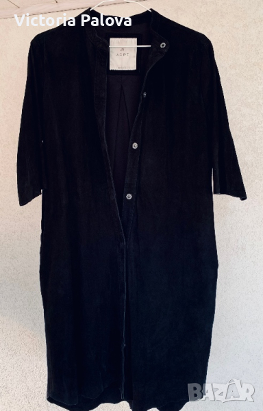 Тънка нежна козя кожа-велур,изработена в Индия,красиво дълго сако или лятно палто-два вътрешни джоба,ръкав до лакът-38см,плоха на гърба-прекрасна кройка.рамене-40-42см,ГО-55-56см,дължина отпред-97см,отзад-102см.