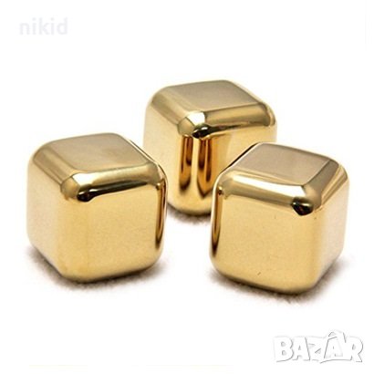 2 бр стоманени златисти кубчета за охлаждане на напитки уиски тип лед кубче стомана