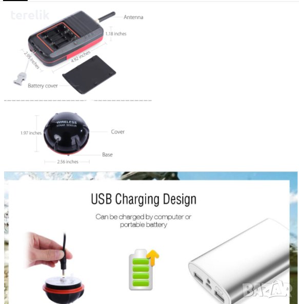 БЕЗЖИЧЕН РИБОЛОВЕН СОНАР, ЦВЕТЕН 100М от вносител 12 месеца гаранция.Страхотен подарък за рибар → Обява 37741545