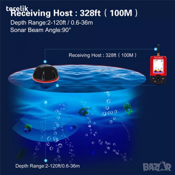 Дълбочината, която ще може да измерете е до 36 метра. От своя страна обхватът на безжичен приемник е до 100 метра с работна честота на сонара 125KHZ. Регулирането на ниво на чувствителност от 1 до 20, спомага лесно да откриете позицията на рибата. Моделът е приложим във всички видове водни басейни като океани, морета, езера, реки и т.н. Може да работи безпроблемно на температура от -20 до 70°C , което го прави подходящ за сладка, солена или ледена вода.