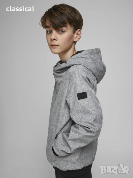 Ново яке Jack & Jones Junior с качулка JJESHALE NOOS светлосив меланж.