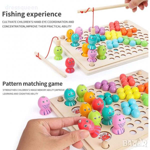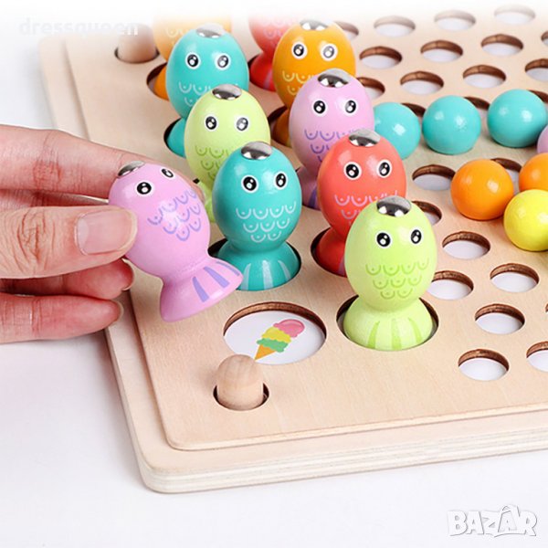 3584 Дървен пъзел с топчета и магнитни рибки → Обява 37742844