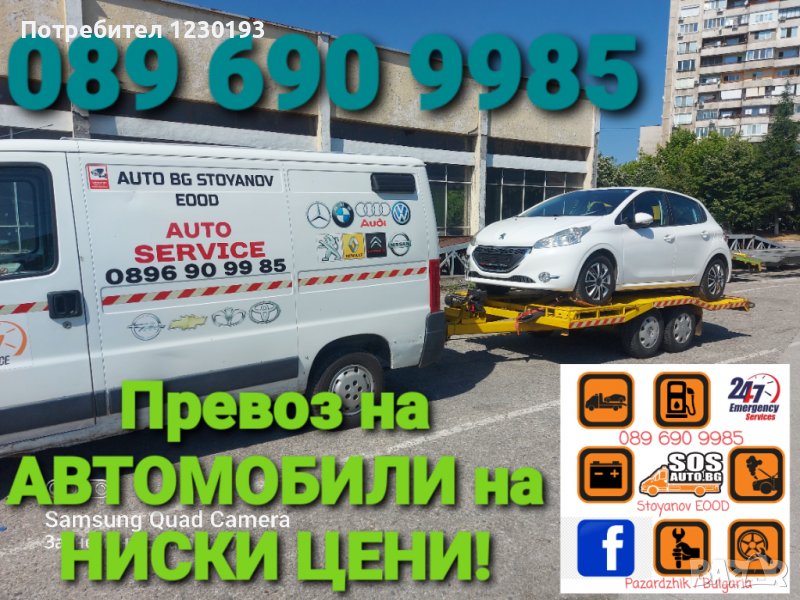 превоз на автомобили в България и Чужбина на приемливи цени! Превоза се осъществява бързо внимателно и прецизно с Бус и ПЛАТФОРМА! Превозват се автомобили във всякакво състояние като: АВАРИРАЛИ МПС-та,РАЗГЛОБЕНИ,РАЛИ СЪСТЕЗАТЕЛНИ,БРАКУВАНИ и други автомобили и селскостопанска техника!Товарене и разтоварване с електрическа лебедка от 13000lbs =5907кг. теглителна сила при товаренето и разтоварването! Превоза е обезопасен с обезопасителни колани до точката на разтоварване!