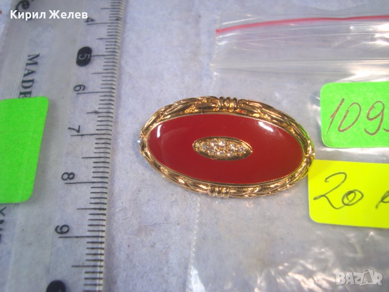 ПРЕКРАСНА ПОЗЛАТЕНА ЕМАЙЛИРАНА КРИСТАЛНА РЕТРО АРТ БРОШКА от БЛАГОРОДНА СТОМАНА 10938