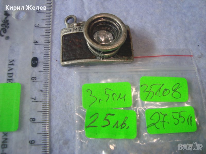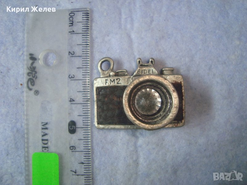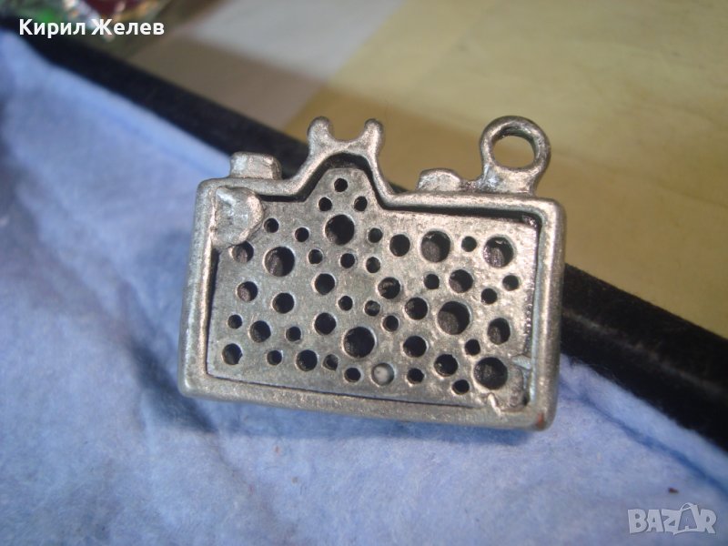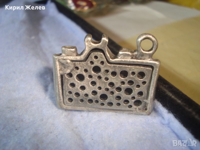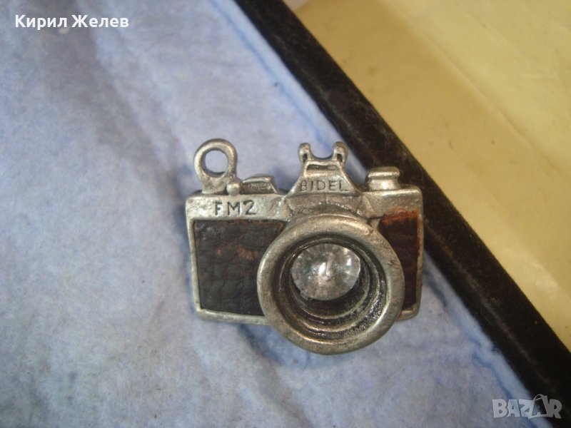 ПОСРЕБРЕН ЛАКИРАН ВИНТИДЖ ПЕНДАНТ - РЕТРО ФОТОАПАРАТ ФИГУРАЛЕН АРТ МЕДАЛЬОН с КОЖА и КРИСТАЛ 35108