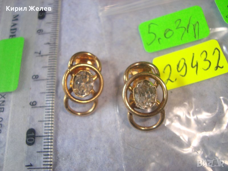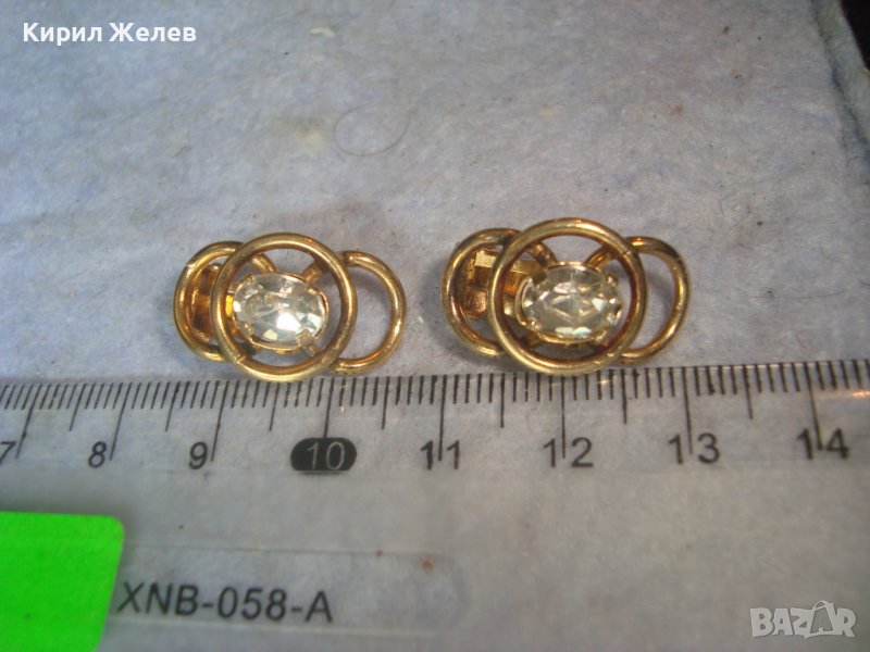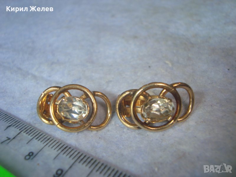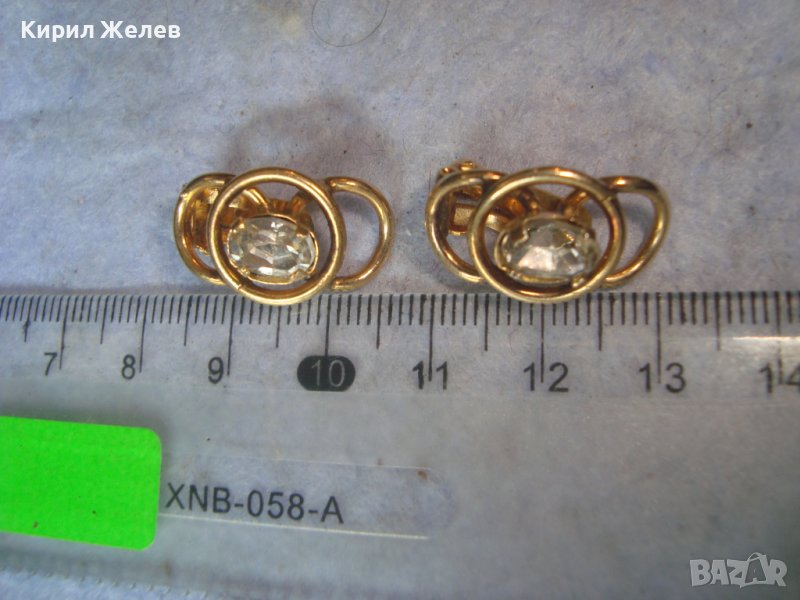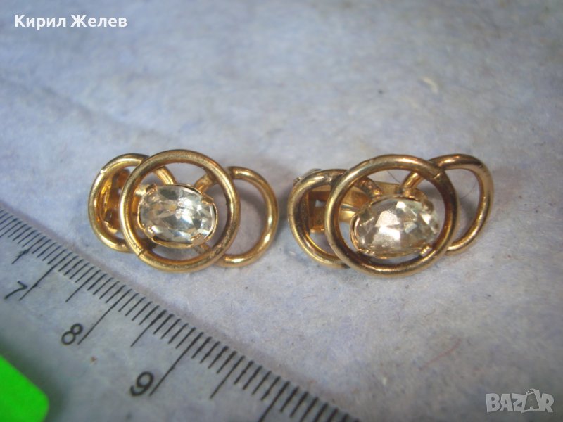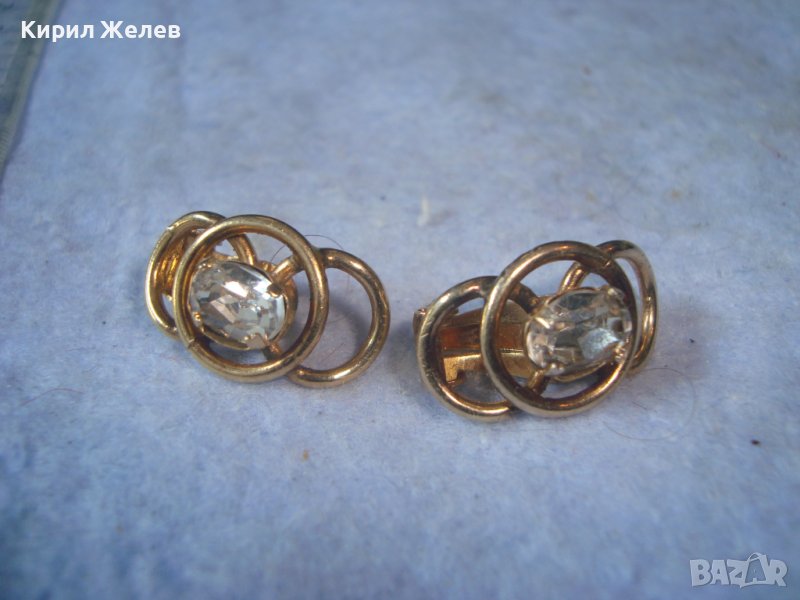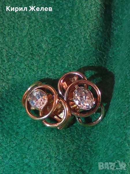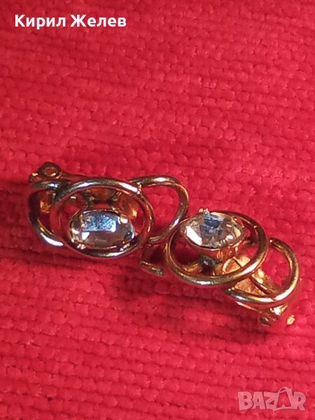 СТАРИ ПОЗЛАТЕНИ СТОМАНЕНИ НЕРЪЖДАЕМИ АРТ ДЕКО КЛИПС ОБЕЦИ с ФАСЕТИРАН ЧИСТ ПЛАНИНСКИ КРИСТАЛ 29432