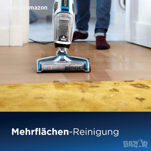Многофункционалната машина CrossWave прахосмукира, измива и помага едновременно за сушене на подове. Идеален за плоски повърхности, плочки, паркет, но също и килими