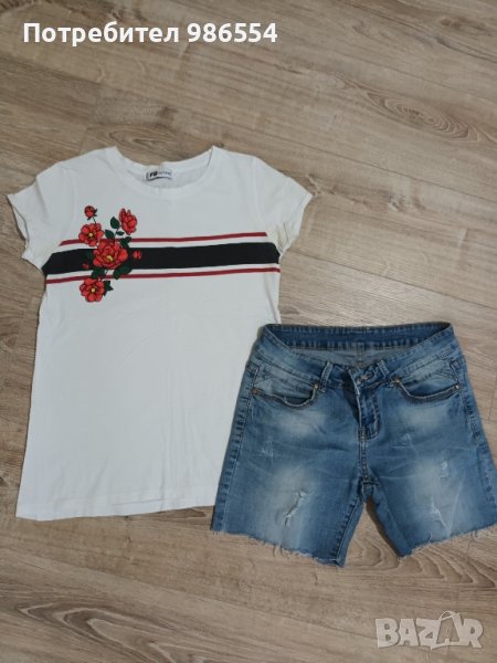Сет тениска и къси дънкови панталони размер S → Обява 37749363