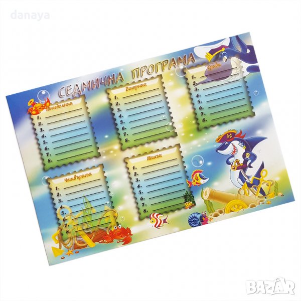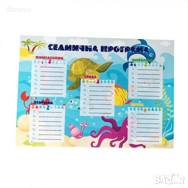 Ученическа седмична програма, изработена от гланциран картон, А4 формат. Забавен морски дизайн.