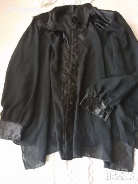 Продавам нова,дамска риза коприна в комбинация сатен,дълга.Може да се носи и като туника,размер" ХЛ".