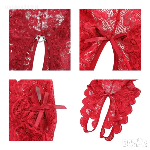 - Еротичното боди с отворено дъно е перфектният избор за дами, които искат да добавят елемент на изненада и сексапил към интимните си моменти. За по- добро прилягане и комфорт моделът е декориран с връзки по страничните части на ханша и в областта на под бюста, които добавят игривост и възможност за регулиране. Дизайнът предоставя лесен достъп, което го прави идеални за интимни моменти, без да се налага те да се свалят напълно.