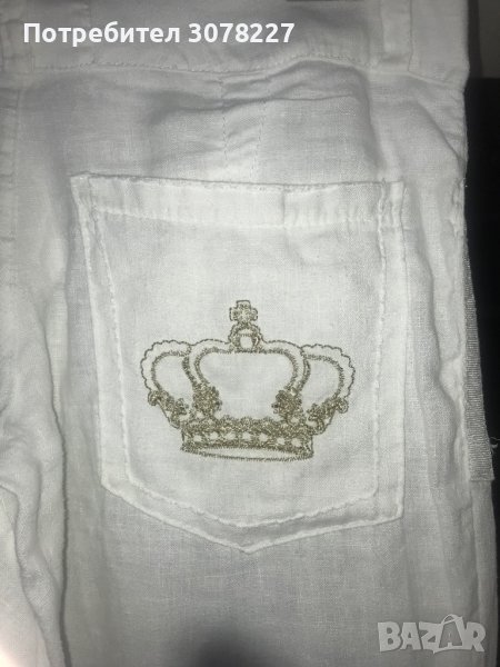 Ленен панталон с ниска талия. Има бродерия-корона на задните джобове, която стои много ефектно. По дупето е, а надолу крачола е широк.