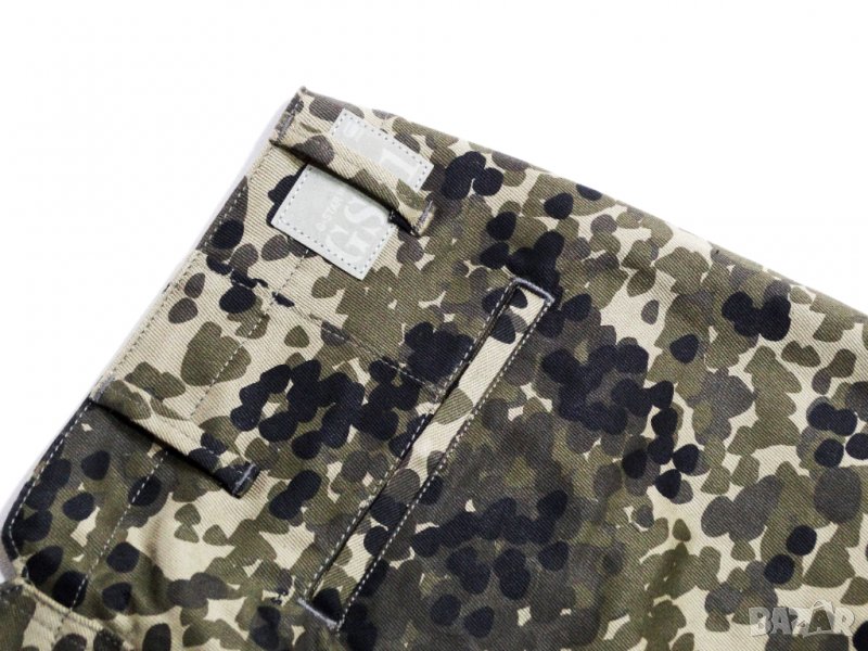 Нов милитъри панталон с камуфлажна шарка Noman Camou Comfort TT, слим модел с 4 предни джоба и два задни, без еластичност 100% памук, размер по етикет W31, но реално отговаря на W30 дори W29 размер, леко смъкнато дъно. Обиколка на талията 83см, ханш едностранно 48см, бедро шир. на крачола до четал 28,5см, подгъв долу14см, дължина странично от холан до долу 94см. Модела се носи с навити крачоли.