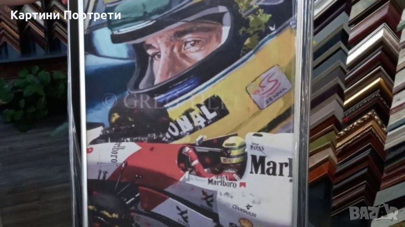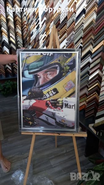 Много красива картина с F1 Легендата Сена. С много красива рамка. Платното е опънато на подрамка.