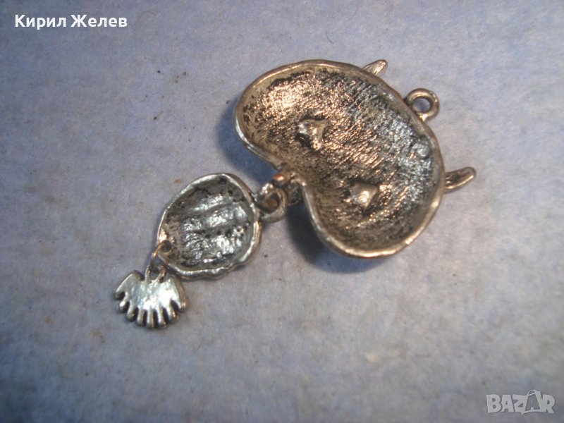 ПОСРЕБРЕН ЛАКИРАН РАЗДВИЖЕН ФИГУРАЛЕН АРТ МЕДАЛЬОН БУХАЛЧЕ с ФАСЕТИРАНИ ЗЕЛЕНИ КРИСТАЛЧЕТА 20952