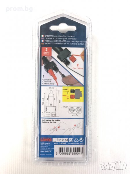 букса за запалка, щепсел с изводи, 12-24V, Италия → Обява 37758487