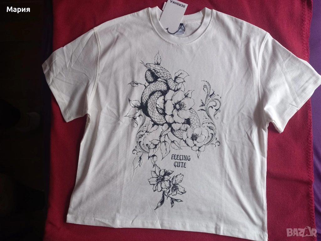 12. Бяла блузка на Бершка. Размер С. Намалена на 6 евро
