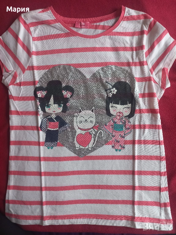 7. Бяла на червени райета със сребърно сърце. 152/156 cm