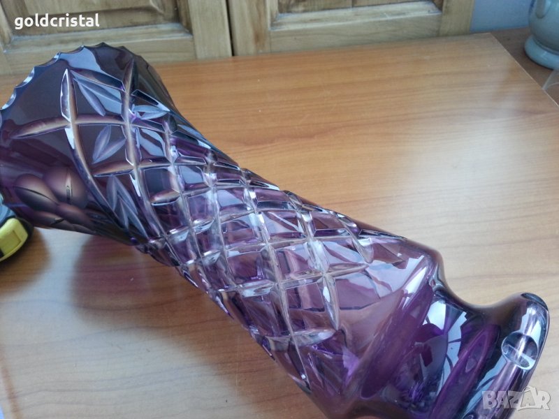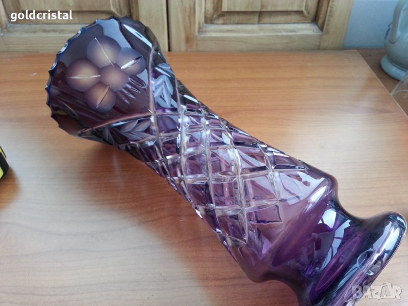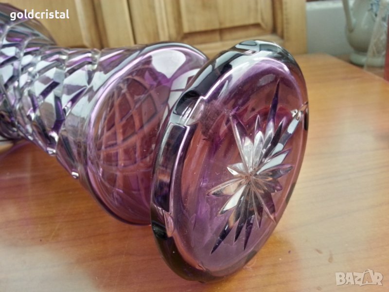 Кристална голяма ваза цветен лилав Кристал без забележки ретро арт декор винтидж колекция стари антикварни предмети обзавеждане за дома и семейството