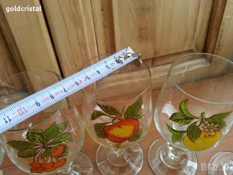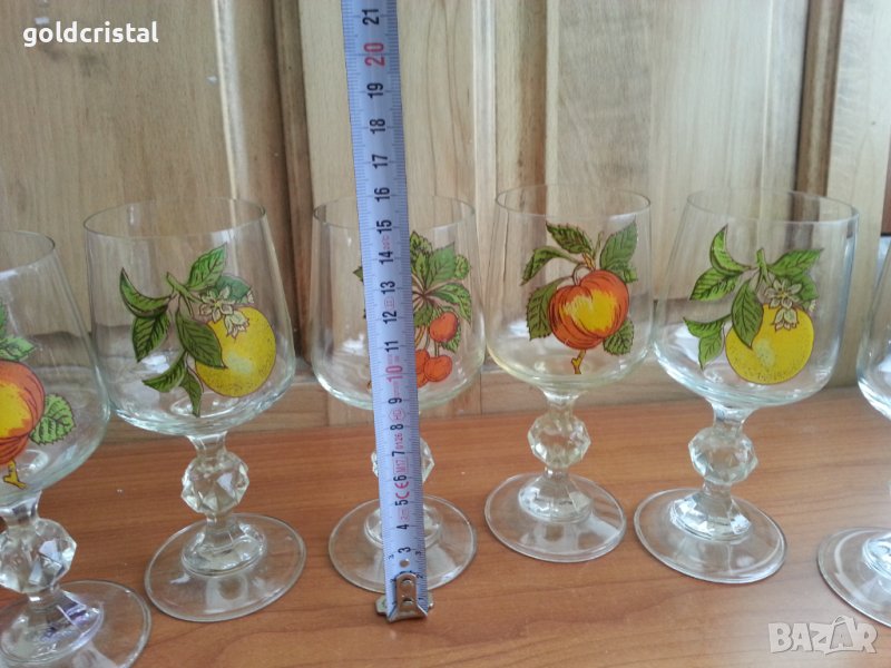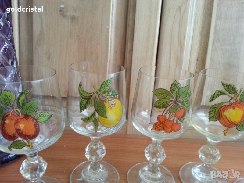 Стъклени кристални чаши за вино кристално стъкло тънкостенни с плодове 6бр-85лв 5бр-69лв сервиз комплект сет лот ретро арт декор винтидж колекция стари антикварни предмети обзавеждане за дома и семейството подходящи за подарък за ценители и колекционери