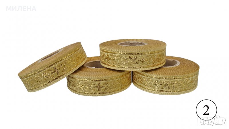 Сатенена лента с широчина - 20 мм. Дължина на ролка - 10 м. С бродерия от златисто ламе. Цената е за ролка с включено ДДС.
