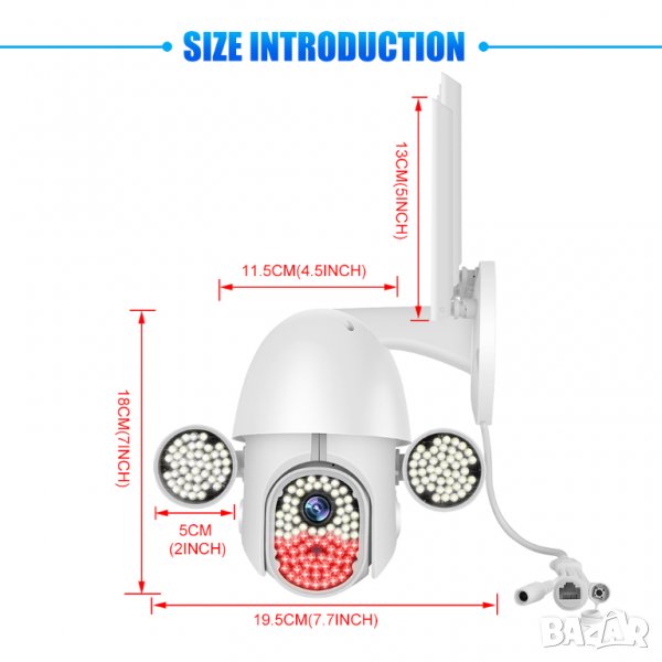 - Високо ефективен инфрачервен масив, ниска консумация на енергия, разстояние на осветяване до 60 метра.