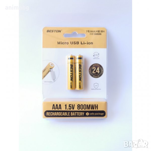 ANIMABG Литиево-йонни презареждащи батерии, ААА, 1.5V, 800mWh, Бързо зареждане, 2 броя