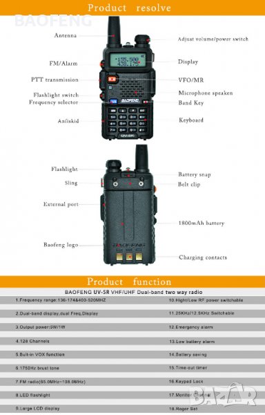- Честотен обхват: 136-174 / 400-480MHz