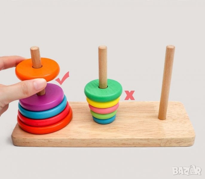 Ханойска кула - логическа игра за малки и големи; подарък за дете, момче момиче → Обява 37767646